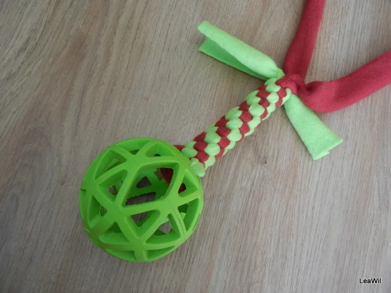 hračka pro střední psíky a štěňátka Délka pevné fleec části cca 14cm, šíře 2,5cm, průměr míčku cca 9cm, míček z pružné gumy pevná, bezpečná celý popis