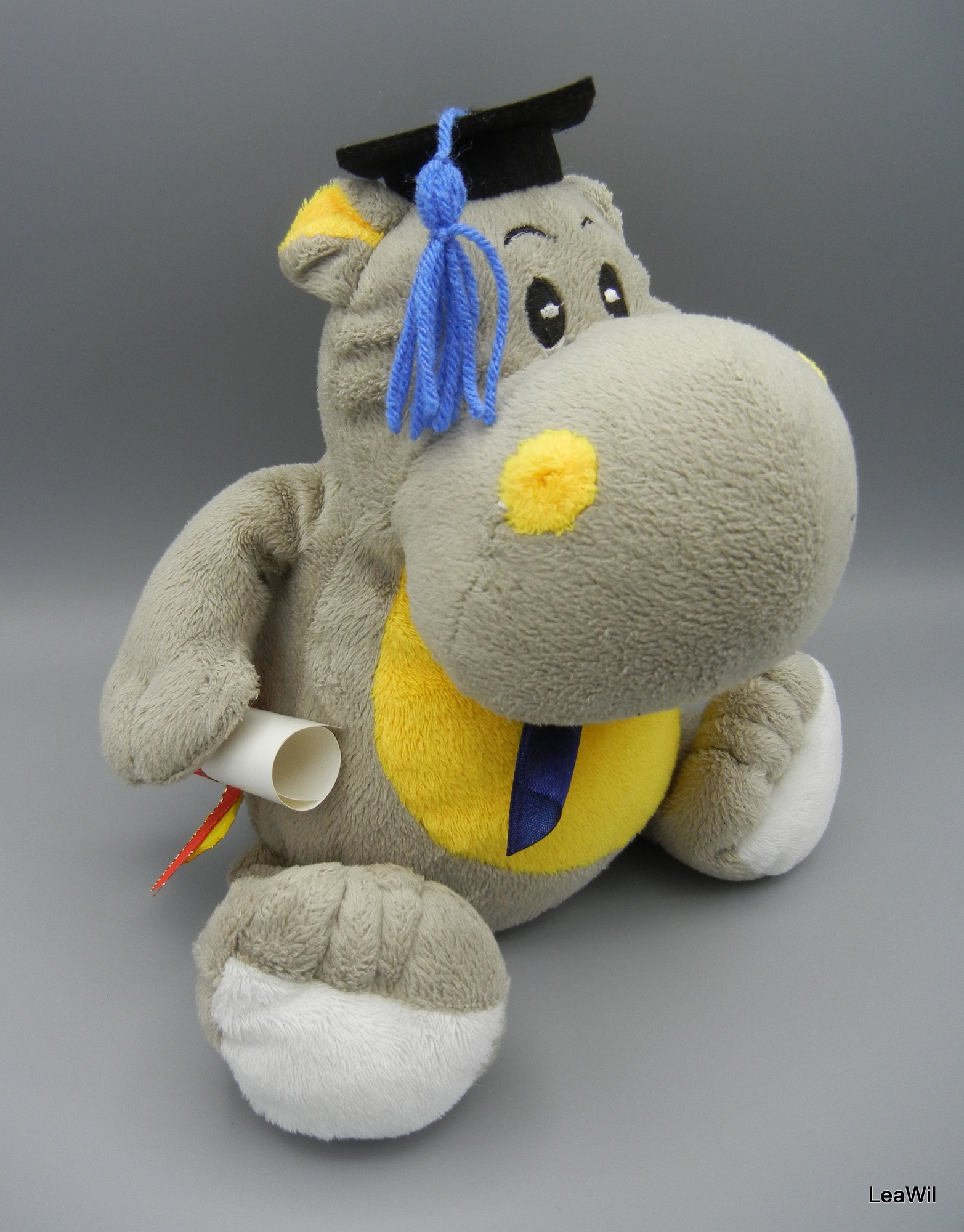 plyšák/dárek za promoci či maturitu, vysvědčení nebo důležitou zkoušku, každý plyšák má dělanou promoční čepičku na míru z filcu a střapec z vlny, saténovou mašličku na krku, diplom z ozdobné stuhy s "pečetí", papír křídový, vyjímatelný z očka stuhy, lze na něj tedy napsat/nakreslit přání, gratulaci a pod. a zpět stočit a vložit