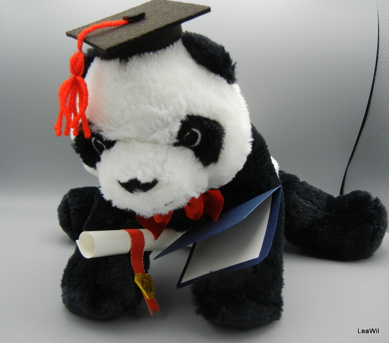 plyšák/dárek za promoci či maturitu, vysvědčení nebo důležitou zkoušku, každý plyšák má dělanou promoční čepičku na míru z filcu a střapec z příze, saténovou mašličku na krku, diplom z ozdobné stuhy s "pečetí", papír křídový, vyjímatelný z očka stuhy, lze na něj tedy napsat/nakreslit přání, gratulaci a pod. a zpět stočit a vložit