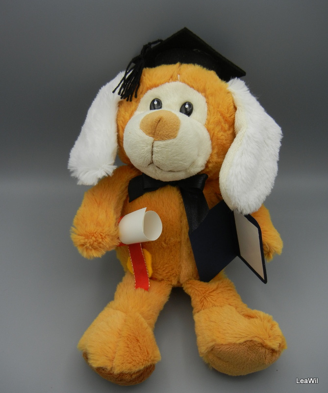 plyšák/dárek za promoci či maturitu, vysvědčení nebo důležitou zkoušku, každý plyšák má dělanou promoční čepičku na míru z filcu a střapec z příze, saténovou mašličku na krku, diplom z ozdobné stuhy s "pečetí", papír křídový, vyjímatelný z očka stuhy, lze na něj tedy napsat/nakreslit přání, gratulaci a pod. a zpět stočit a vložit