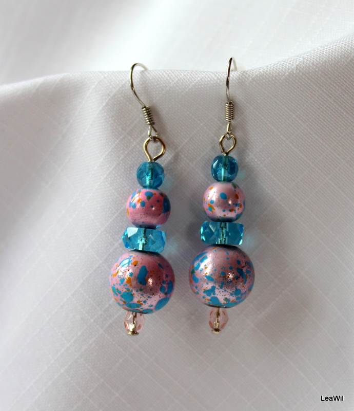 Naušnice z ohňovek a korálků, komponenty v platinové barvě.