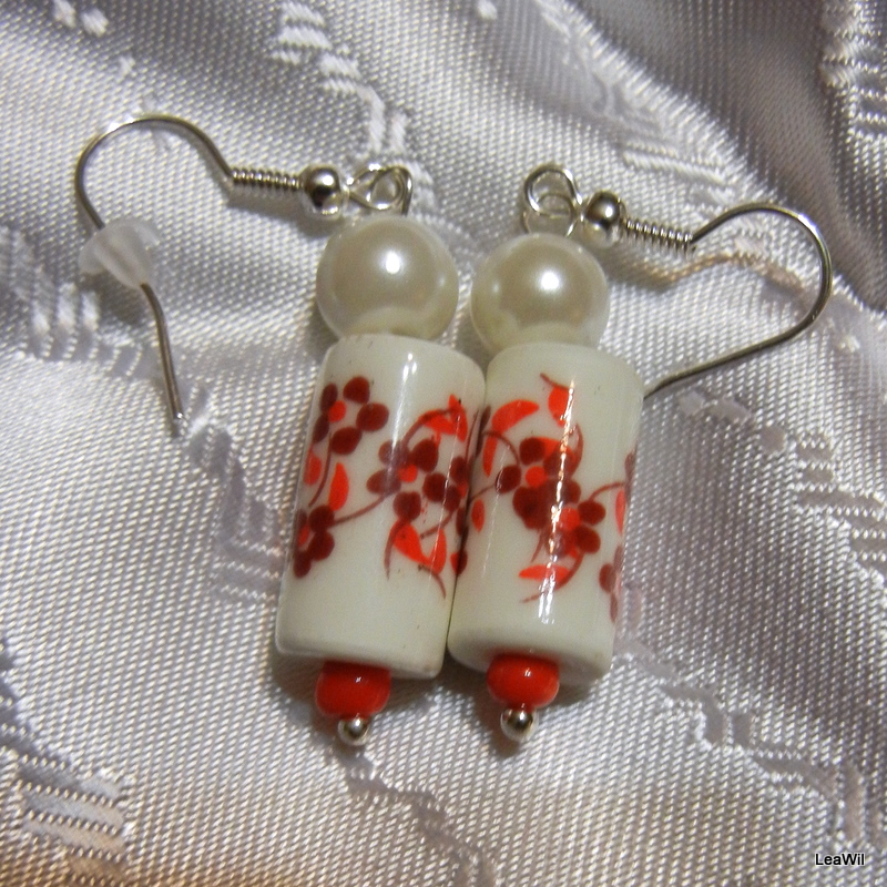 Naušnice z porcelánových korálků a vosk. perliček, komponenty ve stříbrné barvě. Naušnice budou dodány se silikonovou zarážkou.