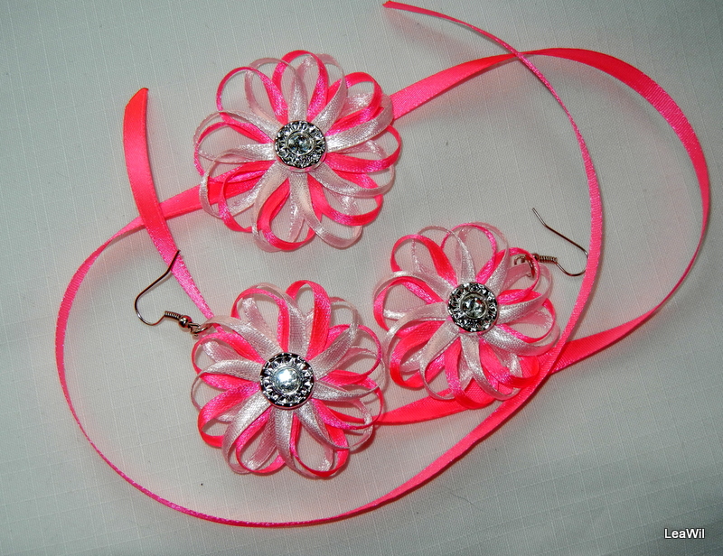 - Stužková květinka naušnice + obojek/náramek sada