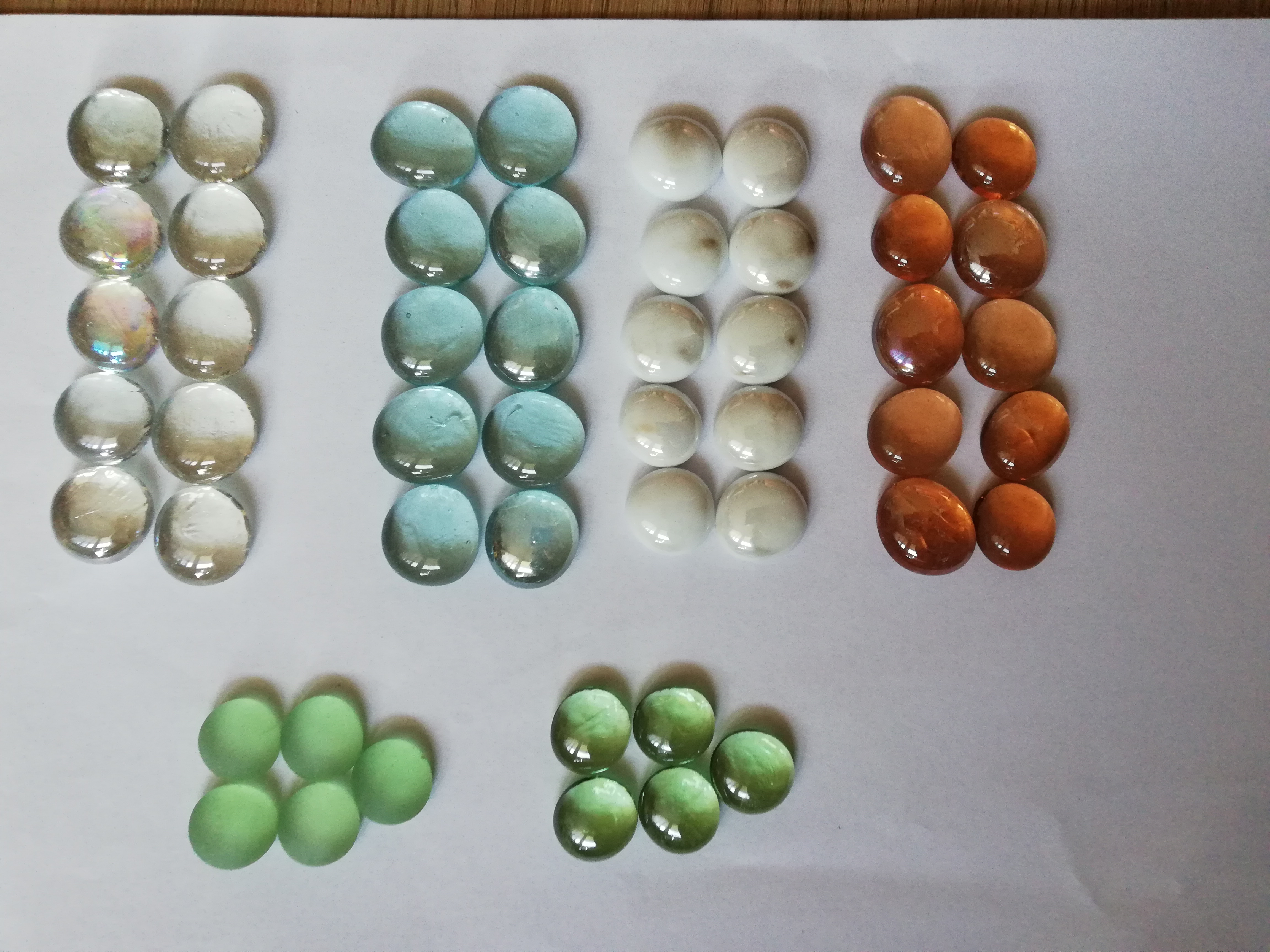 Kamínky mají průměrnou velikost 1,8cm, v jednom balení jich je 50ks