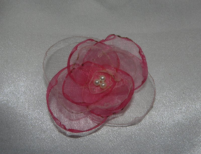z organzového materiálu sv. a tm. růžové barvy, s perličkami, průměr cca 6 cm