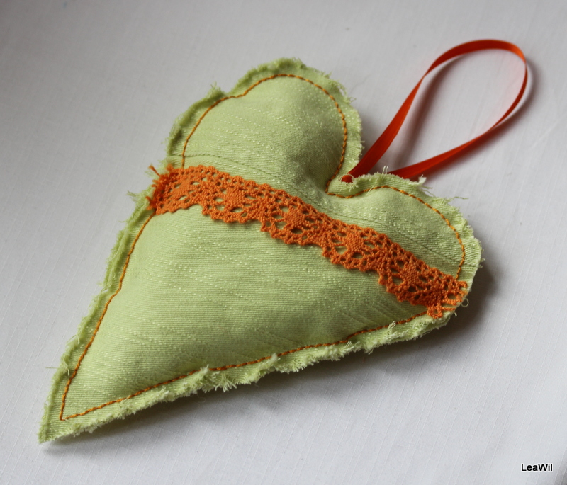 - Dekorační srdíčko zelenooranž krajka