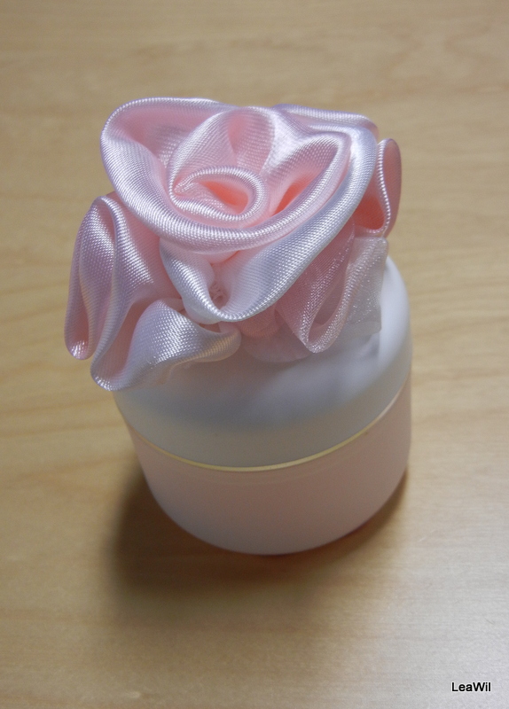 na víčku látkový květ, přidělaný tavnou pistolí na pevno
