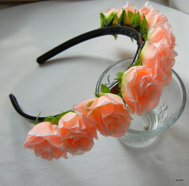 - Čelenka květinová lososová/broskvová