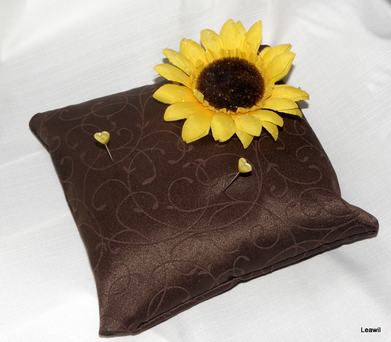 - Polštářek pod prstýnky hnědý ornament se slunečnicí