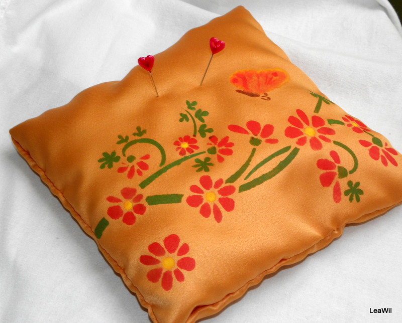 polštářek pod snubní prstýnky - oranžová látka s jemným leskem, s batikovaným vzorem,