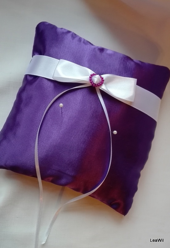 materiál - kvalitní fialový lesklý satén, stuha se srdíčkem, špendlíky (k úchytu prstýnků, nebo možno uvázat na stužky)...