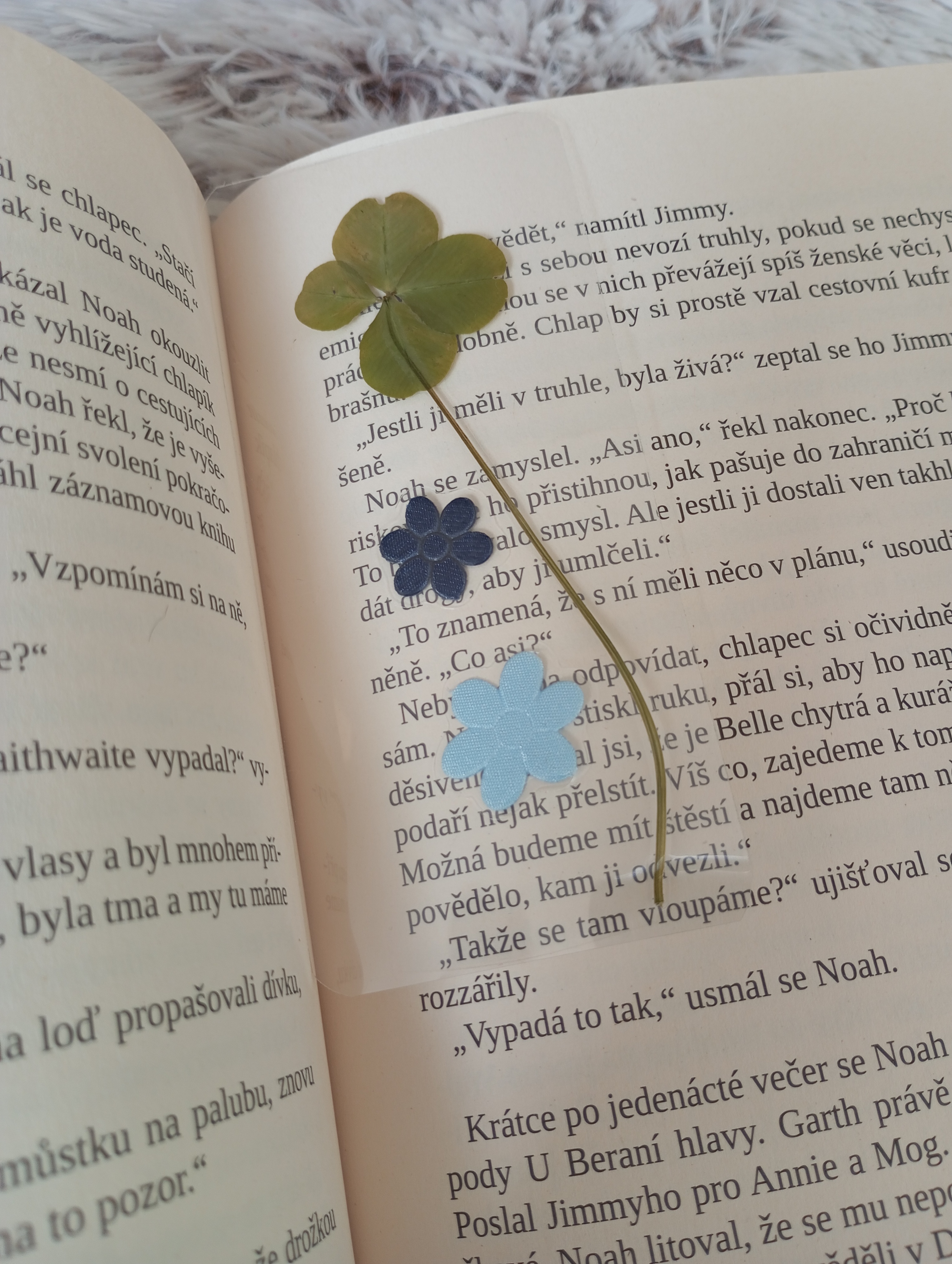 Záložka z pravého čtyřlístku a saténových přízdob