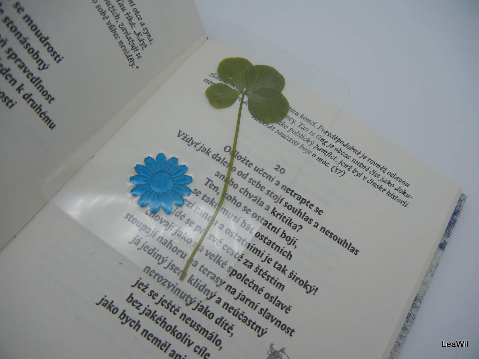- Čtyřlístková záložka do knihy tyrkysová kytička