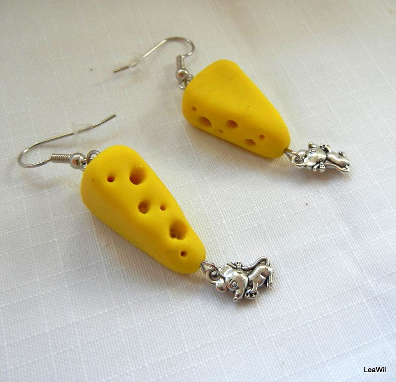 Naušnice z výlisku a plátku sýru z fima, komponenty v platin. barvě