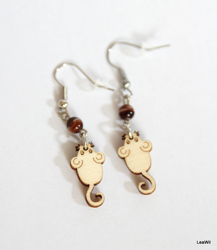naušnice ze dřeva a bižuterních komponentů, dodáváno se silikonovými zarážkami