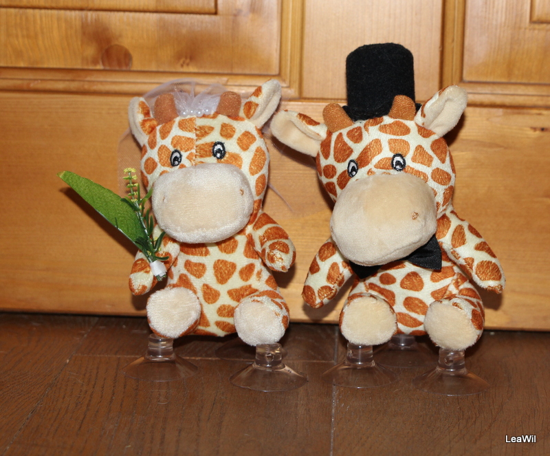 ženich- vysoký cca 19 cm včetně černého cylindru, černý taftový motýlek, 3 přísavky k upevnění na kapotu auta