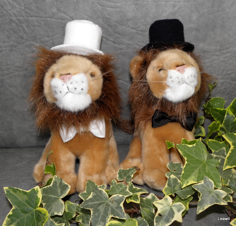 lvíčci jsou vysocí cca 19 cm včetně černého (bílého) cylindru, černý (bílý) motýlek, 3 přísavky k upevnění na kapotu auta
