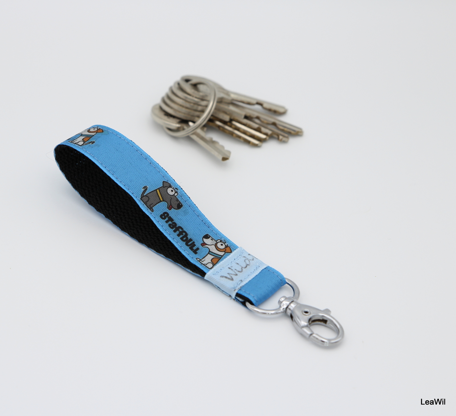 klíčenka z popruhu šíře 2cm a taftové stuhy s potikem