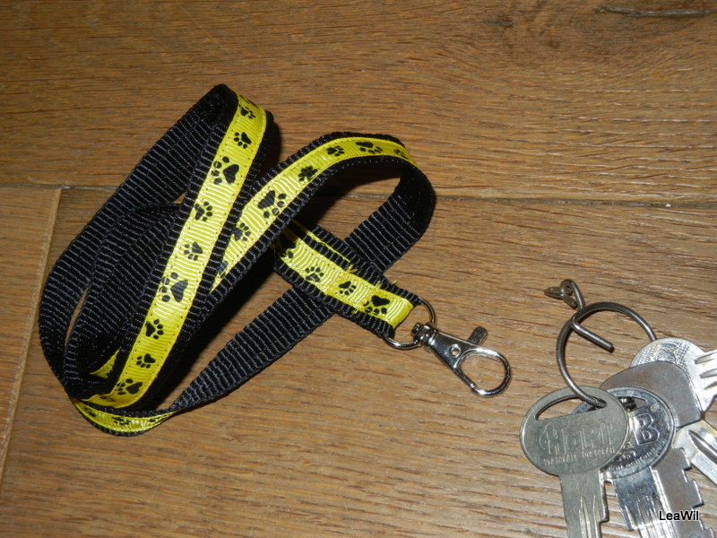 klíčenka z popruhu šíře 1,5cm a rypsové stuhy s potiskem